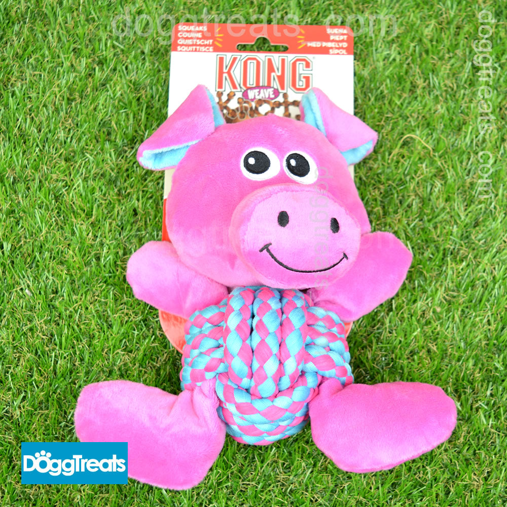 Kong Weave Knots Dog Toy - Pink Pig or Blue Moose - With Rope and Squeaky Squeaker